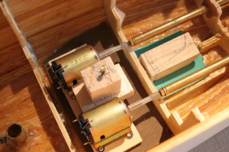 Über den Einbau der Wellen habe ich bereits im Teil Rumpfbau berichtet...Zur Abdichtung habe ich wie beim Krabbenkutter die große blaue Niveadose zur Hilfe genommen. Ich hoffe, das reicht.
