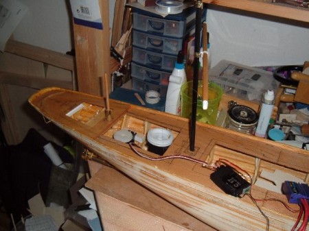 Der Ruderservo hat schon seinen Platz, über den Anschluss des Ruders und des Rudergestänges selbst, sind wir noch uneins ;-)