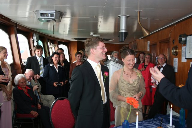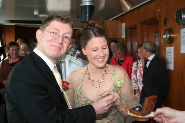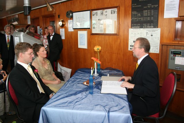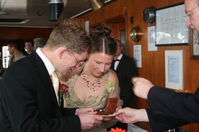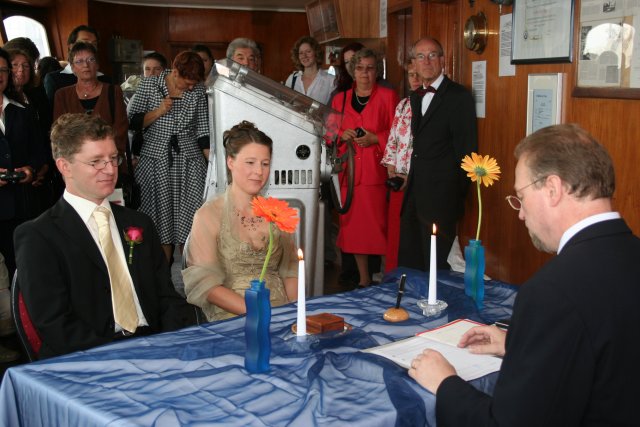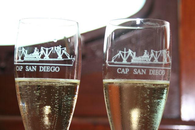 die Trauung fand auf der Brücke der Cap San Diego statt...